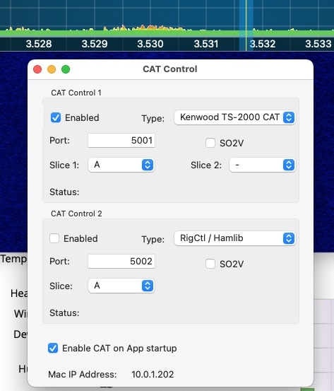 Once you’ve clicked Enable, you will now have a TS-2000 CAT interface running in SmartSDR for Mac.