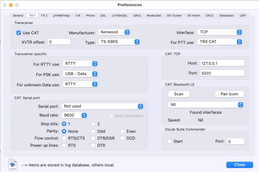 2. Configure RUMlogNG Transceiver 1 for Kenwood TS-590